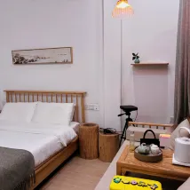 A homestay hidden in the city, with West Lake just outside, within the ancient city, and free parking in the neighborhood nearby. Opening the door is a different world, with a small patio and an open tea room. If you book two rooms on the first floor together, it feels like you have wrapped up in one floor. Cheap and good quality. The sanitation is so clean that it's like your own home. Although it's not very convenient to change shoes when you enter the door, it's clean and quiet. There are many specialties nearby, and I am very satisfied.