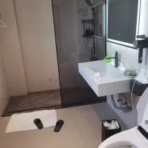 Facilities: The toilet's urinating sensor for boys is not very sensitive (maybe it's my problem). You need to sit down for a few seconds and then stand up to flush the toilet. The toilet is very large. There is no sliding door in the bathing area. Washing water at the back station will be sprayed. On the floor outside, the projector is not very clear. It doesn't even have 720p. It's too blurry. There are no cable channels. If you only have a mobile phone, it will still be a bit boring (if you don't have a membership)