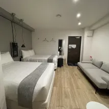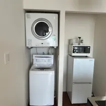 The room is very big, the washer and dryer is right in the room, you can wash anything you want, there is a refrigerator, microwave and a small kitchen, overall it is comfortable to stay in. But there is a problem that the air conditioner outlet is facing the bed, I am afraid of getting cold.