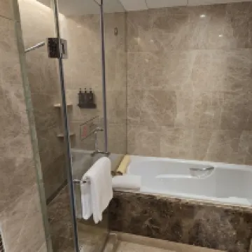Five-star standard: clean, tidy, very quiet, with a separate shower and a bathtub. The only slight inconvenience is the lack of robot delivery service for food, but for a business trip, it's perfectly fine.