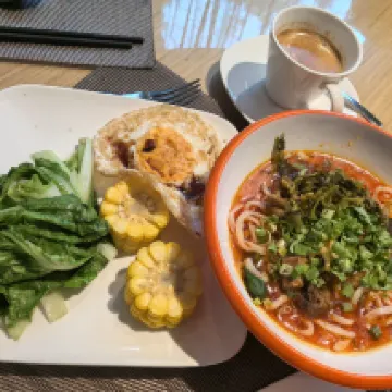 A classic five-star hotel with excellent service. The restaurant food offered great value for money, and the breakfast selection was extensive, with the beef brisket noodles being particularly delicious. The front desk staff were incredibly helpful; upon learning I had trouble sleeping due to noise on my first night, they proactively arranged a quiet room for me and even replaced my neck pillow. The only minor downside was that our standard double room only had one chair, leaving the second person with no option but to sit on the bed. It would have been perfect if there had been two chairs.