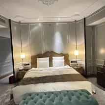 The hotel's location is excellent, and the service was absolutely amazing! From the moment we stepped into the lobby, every staff member's warm smile and professional greeting made us feel incredibly valued. The rooms were spacious and luxurious, and the bedding was exceptionally comfortable, ensuring a perfect night's sleep. The dining experience was equally outstanding; the breakfast offered a rich variety of delicious options. The attention to detail was evident throughout, truly living up to its five-star quality. Our stay was absolutely flawless. We will definitely choose this hotel again and wholeheartedly recommend it to all our friends!