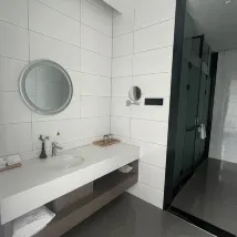 The facilities are complete and well-equipped. The environment is elegant and pleasant. The service attitude is very good, and they can understand and provide help in time. The surrounding supporting facilities are complete, the room is quiet, and it is not far from the aquarium. The shower area is large. You can take a shower!
