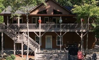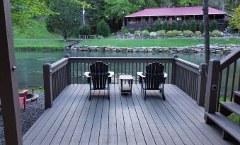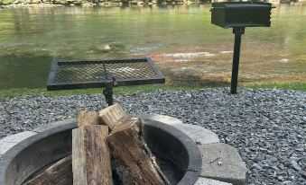 The cabin has a beautiful porch where you can relax with the sounds of the river, or you can sit by the wood firepit and enjoy some marshmallow.