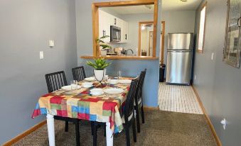 Wifi throughout. Glider and gas grill are outside the front door. There is a laundromat across the street and a large park with splash pad and play equipment 1 block behind the apt. The sidewalk around the park is .9 mile if you want to get your exercise in.