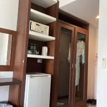 In a quiet location. 3 km from tourist area. The room is okay but the wall is a bit dirty. The sink is in the shower room which kinda wired. Budget stay hotel and good service.