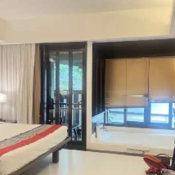 Due to high season, we had to switch rooms mid-stay to an Executive King, which was quite spacious. It had a large bathtub on one half of the balcony. The room was in a corner, so the window view wasn't great. There were ants in several spots in the room; staff promptly took care of it, but new ants appeared again shortly after. If you don't need a bathtub, I'd recommend the Deluxe room instead.