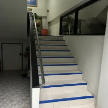 Very clean apartment building with louvered windows in hall way and open spaces between floors so it can be noisy if guests are inconsiderate. Location is excellent. Close to good food, markets and 7:11. Beds are old but ok. Hot water pressure could be better. Air con good. TV old and poor movie reception. No jug or mugs for tea/coffee. Good small fridge. Two seats and a small table supplied in room. My room had nice view of garden on level 3. I would stay again but maybe for shorter stay. 5 nts is a bit too long in one place if there is noisy neighbours. A good place overall but windows in hallway are a minus!