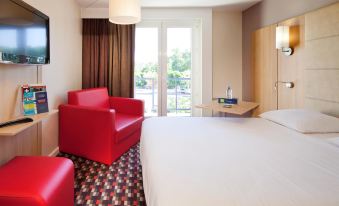 When you have an upset tummy in the night & need to use the loo several times, a scenario you do not want to encounter is a shortage of toilet paper. On arrival & before the emergence of the upset tummy, I'd noticed the 2 rolls of toilet paper in the loo looked like they were coming to the end. There was no spare in the bathroom & no box of tissues. To put not too fine a point on it, I was glad I had a few sheets of kitchen towel left over from a picnic, which I had to resort to. Calling housekeeping on the phone, in French, for more toilet paper whilst occupied with tummy pain, wasn't an option. So nil points for Ibis housekeeping. Also disappointing, as this was not a cheap overnight stop, was that no tea/coffee making facilities were privided in the room. You had to go down to reception to use the kettle tucked away in the corner for making drinks. Nice location by river with plenty of trees & a pleasant 15 minute walk into town. But overall disappointing & not equipped to standard expected for price paid. Wouldn't use Ibis chain again.