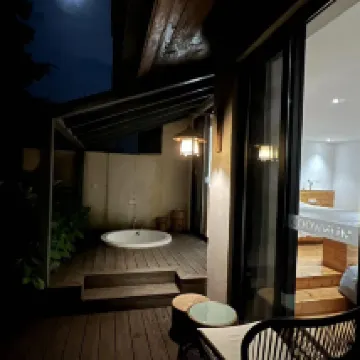 The hotel service was excellent. They contacted us in advance with directions and recommendations. Room service was very good, and they even provided complimentary fruit, snacks, and late-night desserts. The room was spacious and clean with a great view. The smart toilet was a nice touch, and the outdoor bathtub was large and filled up quickly. Breakfast was abundant; I recommend choosing the Western option as it's quite aesthetically pleasing.