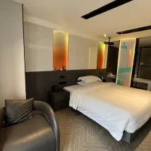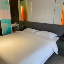The front desk service is good, the transportation is convenient, the location is very prosperous, and it is convenient to travel. There is a parking lot downstairs, which is very convenient. The lobby is simple and elegant, with a good layout. The front desk is enthusiastic and proactive, and the professionalism is very good. The room has good lighting, bright, quiet, comfortable, fast Internet speed, one room, one network, and convenient office. After checking in, the room is very clean, the hot water is very sufficient, the bathroom is also separated into dry and wet areas, there are two bottles of free mineral water in the room, and there is a washing machine that can be used for free. The room aunt is kind, the service is good, and the movements are quick. Very good stay experience, highly recommended!