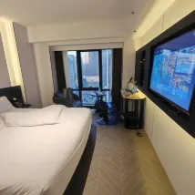It was my first time to book this hotel. The hotel is very close to the light rail station and the environment is also good. I stayed with my friends. I went to see the room I booked. The room was clean, but a little small. I changed to a room with a large floor-to-ceiling window. The front desk lady also gave us a discount. The service was very enthusiastic. Because we were here for tourism, she also gave us a small travel guide, which was very good. The upgraded room has a projector, so watching movies is more enjoyable. The room has basically all the facilities it should have, including disposable face towels and toilet seats. There is also a free laundry room on the 30th floor. There is also a dryer. There is also access control on the floor, which is relatively safe.