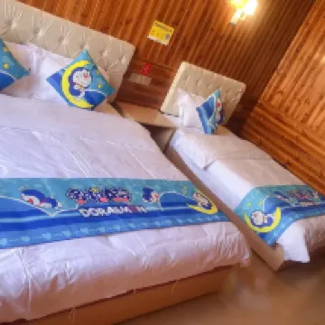 The room was quite spacious. We booked a family room, and the decor was a forest-themed style with wooden floors all over the walls. It was cozy and clean, and the service was quite good. We borrowed their refrigerator to refrigerate some things, and they didn't complain. The air conditioning wasn't very effective, but it was still cooler than in the city center. However, the sheets and blankets were quite thick, so we had to turn on the air conditioning at night.