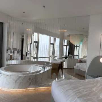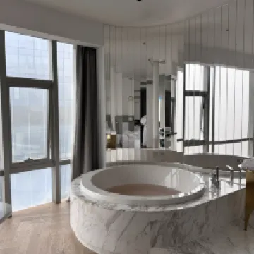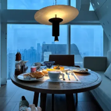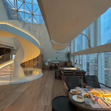 The hotel boasts a very stylish design, with panoramic floor-to-ceiling windows and smart home features. You can soak in the bathtub by the window while enjoying the night view, and they even provide a Dyson hairdryer. The hotel's interior environment is quite nice and perfect for taking photos. Breakfast offers a good spread of both Chinese and Western options, including freshly cooked noodles. The afternoon tea is quite exquisite. The location is excellent, just a 5-minute walk to Jiefangbei and Hongyadong. Overall, it was a great experience.