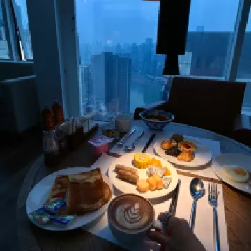 Really loved this panoramic restaurant! Located on a high floor, it's perfect for taking photos. I was pleasantly surprised by how delicious the afternoon tea was, and breakfast was extensive, offering both Western and Chinese options. The bedroom also had a great river view. I adore it! The large bathtub was a lifesaver after a tiring family trip – soaking in it while enjoying the river view was wonderful.