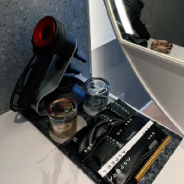 - High-quality Dyson hairdryer, and there's a mini-bar in the room.