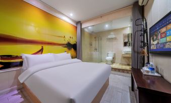 The hotel is located at No. 545-14, Xuefu Jiayuan, Baosheng Avenue, Yubei District, Chongqing, close to the north gate of Southwest University of political science and law. The hotel is a warm and fashionable business hotel. The hotel is within 15 minutes' drive from Jiangbei Airport, Chongqing north railway station and other transportation hubs, as well as happy valley, Garden Expo Park, Yuelai Convention and Exhibition Center and other tourist attractions. There are Huixing light rail station and Baosheng Avenue bus station around the hotel. Many lines go directly to the major business districts in the main city, and the transportation is very convenient. The hotel room integrates warmth, comfort and fashion, is equipped with standard bed, comfortable shower facilities, full coverage of wireless network and personalized service, so that each guest has a cost-effective check-in experience.