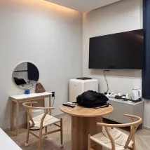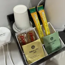 The amenities were excellent — the room was spotless and well-equipped with towels, bathrobes, slippers, a hair dryer, water heater, coffee and tea, a fridge, and complete toiletries including a toothbrush (which is rare in most hotels in Korea).