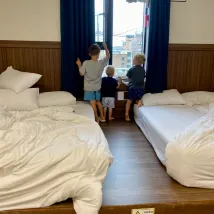 My child had an interview at a nearby school, so I booked a family room. The screen family room was comfortable and satisfying.