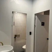 The toilet, shower, and sink were separate, so the room wasn't cramped at all, even with my two middle and high school children. My top priority when traveling is always my accommodations. The lady at the front desk was very friendly and helpful. The mats were placed on the floor, so any dust or hair that might otherwise be hidden under the bed was hidden, keeping it clean.