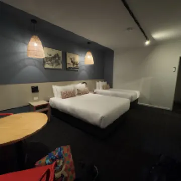 I had seen some reviews mentioning noise, perhaps those guests were just unlucky with noisy neighbors, but we stayed for 4 nights and it was very quiet, allowing us to rest well. Hotels in Australia typically don't provide toiletries or slippers, so remember to bring your own! They did provide free tea bags, coffee powder, white sugar, a bottle of mineral water, and a small carton of milk, which was perfect for making a latte in the morning. They even gave us three complimentary drinks, which was a nice touch!