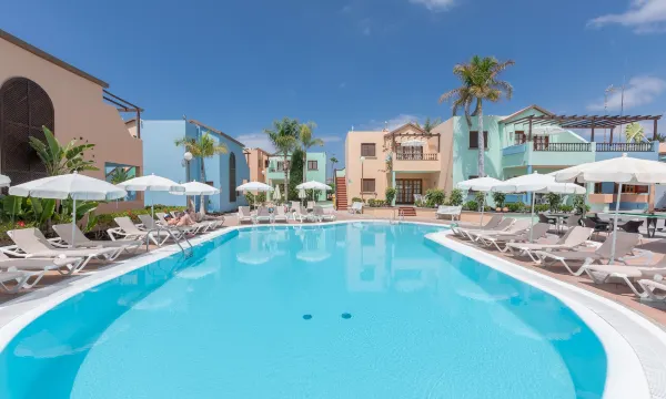I came here for a 4 night break and I absolutely love it x me and my gf think it’s amazing. Rooms are fantastic although would have preferred ground floor. We are overlooking pool and it is beautiful. The rooms are fab, aircon in bedroom excellent and the food is good. We have eaten here 2 nights with no complaints and the breakfast is great. We would definitely book here again. It is worth the money and a spar a couple of minutes walk away. Taxi from the airport was just under 50 euros and a taxi to playa de ingles for the sat market was under a tenner. Market was great. Plenty of lafufus. X weather has been amazing. Could not complain about anything g at all