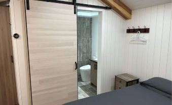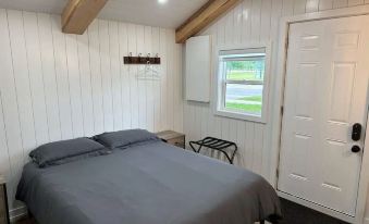 Enjoy this beautiful rustic 2 person cabin! This studio cabin has a queen bed with a full washroom. There is a small kitchenette with a fridge, microwave and a single hot plate with one pot and a pan. This cabin offers not only one but several beaches with sandy areas right across the street! Boat and kayak rentals also offered in the park across the street. More features include: dog leash free zone; exercise park, kids play park, snack store open in summer months. Like ice fishing? The area is famous for that in the winter months! As well only a 12 minute drive to FRIDAY HARBOUR RESORT!
