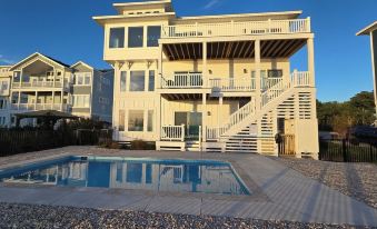 Newly built beautiful large soundfront house with a gorgeous sunset everyday (when there is a sun) in Corolla Outer Banks with a pool! Bring the whole family to this great place with lots of room for fun. It's a 7 bedroom(4 kings, 2 queens and two single beds) house with a full bathroom for each room. Beach access is right across the street. There is a community dock on the left side of the house.About pets:No pets allowed.About children:Children allowed: ages 0-17.About smoking:Smoking is not permitted.About events:No events allowed.