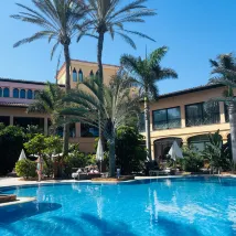 Nice hotel with too much red tape. The rules were ridiculous . I think the staff need to realise that without customers they will be without a job . The pool had a chain across it until 9 am . The bars were very strict on opening times and unhelpful . There were four of us in our party and we wanted to sit together in the buffet outside . They couldn’t do this as it was tables of two so I said I would move the table , this was a if no no and basically they refused us to do this . When we left our transfer was at 5 in the afternoon but because it had gone past 12 they wouldn’t give us a drink on our all inclusive . In the end I had to show we didn’t arrive until 9 pm the previous week so we hadn’t had our full week . Trousers had to worn in the restaurants Evan though it’s a beach resort.
