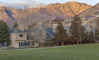 Tucked away between Big and Little Cottonwood Canyons, this cozy getaway, warmed by a gas fireplace, boasts plenty of desirable amenities to make this the perfect choice for large travel groups. Meals may be easily prepared in the open kitchen, with a breakfast bar and an additional counter with stools. More formal meals can be enjoyed together at the nearby dining table, the perfect place for fun, family game nights! And after days out exploring, return home to your private outdoor hot tub.