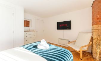 Upon entering, you'll encounter a modern and elegant interior, featuring stylish furnishings and tasteful decor. The open-plan living area, complete with a plush sofa-bed, dining area and a large Smart TV with FREE Netflix which is ideal for unwinding after a day of exploration or a hard day at work. The fully equipped kitchen boasts sleek counter-tops, high-end appliances, and all the essentials for preparing delicious meals during your stay.About pets:No pets allowed.About checkOut:Check out before 11:00 AM.About children:Children allowed: ages 0-17.About checkIn:Check in after 4:00 PM.About smoking:Smoking is not permitted.About minBookingAge:Minimum age to rent: 18.About events:No events allowed.