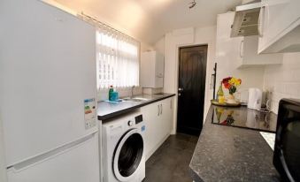 This property comes with a beautiful spacious fully furnished kitchen to make your stay extremely comfortable and a home away from home. It has expansive worktops, a washing machine, clothes airer, iron & iron board, fridge/freezer, cooker, oven & microwave, crockery, cutlery, cups & glasses. We also provide all cooking utensils, toaster/kettle, tea, coffee & milk and more.