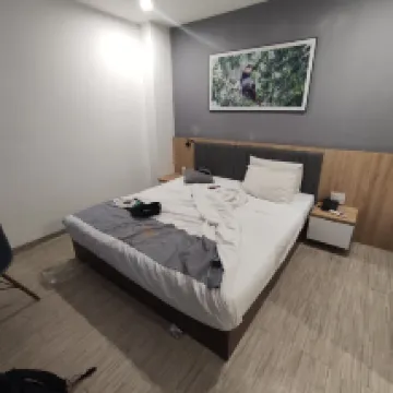 We stayed at this hotel for a few hours before the airport to get ready and wash up. They gave us a room without a window, but the room was big enough, though shabby. There were dashiki and water in the room, and a kettle. We thought the dashiki were a gift, since there was no menu with prices, but it's good we didn't eat them 😂 , since when we checked out of the room the girl started saying that they were paid for and we returned them. In general, it's ok for a few hours, but I wouldn't want to live there for a day. The water pressure in the shower is poor and the air conditioner barely blows.