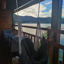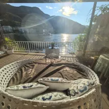 The hotel is situated right on the waterfront, offering beautiful sea views. You can enjoy a close-up view of the water directly from the ground floor. The rooms are well-equipped with all the necessary amenities. My favorite features were the table and hanging chair on the balcony – my child absolutely loved them! The owner was incredibly kind; she even drove out to meet us and help with our luggage upon arrival, and then dropped us off at the main road when we departed. Breakfast was delicious too!