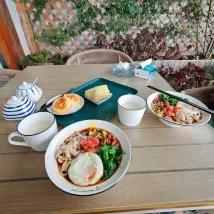 The environment is beautiful and quiet. The owner is very kind and even helped with our luggage. The breakfast rice noodles were delicious. Highly recommend!