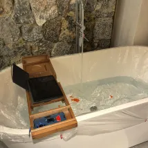 Taxis can't get all the way to the entrance, but when I called the owner, he heroically appeared on his scooter and whisked away our luggage and us. The inn is beautifully situated by the water in a small alley. Plus, there are two super friendly cats there that you can happily pet for ages! They even mentioned a new long-haired kitten arriving soon! The indoor environment is excellent – clean and spacious, and all the disposable amenities are well-stocked. Very satisfied!
