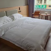 This hotel was a bit disappointing when I first arrived at the door, but I was pleasantly surprised after entering! It is especially suitable for those who come by car. The hotel is very new and the hygiene is very good. I booked a high-end movie-viewing king-bed room, which is very comfortable for two adults and one child. The big screen can also be projected for children to watch cartoons. I like the fact that the hotel has a laundry room. I can wash and dry all my clothes for the past few days. It is super convenient. There are Gongcha, Shanghai Old Auntie and other milk tea shops for takeaway. For meals, If you want to take out, I recommend the "Northeast Spring Cake Shop" which has great taste, large portion and affordable price. By the way, families who come to Jinshitan to play with their children can go to TAO TAO Paradise➕Shengtang Lanshan. The two places are next to each other and can be reached by walking. The small Kyoto commercial street of Shengtang Lanshan is quite good, and you can walk to the end scenery is beautiful.
