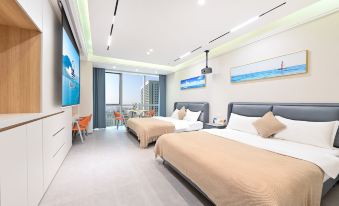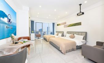 Yan Hai Shuya · Light Sea View Two Double Bed Room (Large Screen Projection, Tencent VIP Member + Wet-Dry Separation)