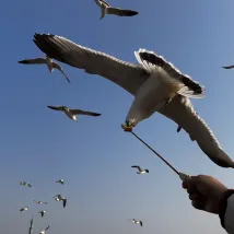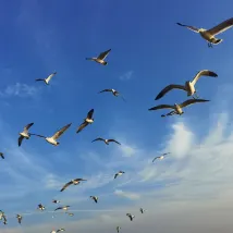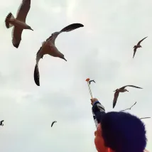 It takes 8 minutes to walk to Xinghai Park. You can feed seagulls in the park. There are few people and the water is clear.