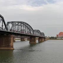 Strategic location to visit the Yalu Broken Bridge as the river is just across the road.