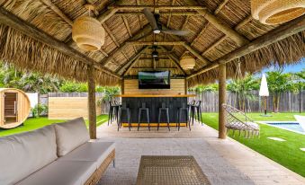 ☀ AMAZING backyard; heated pool, hot tub, sauna, tiki hut with a bar and TV, Weber griddle, mini golf, outdoor games, & more!