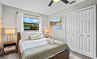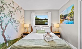 The three bedrooms draw inspiration from some of the most popular attractions in Delray Beach - Pineapple Grove, The Morikami Japanese Garden and the crystal clear beaches. Two bedrooms have queen beds and one bedroom has twin-XL over queen bed. The Garden bedroom has a 55" 4K smart TV. All bedrooms have charging stations and blackout shades. Portable crib can be provided upon request.