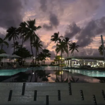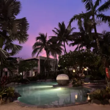 Except that the hotel's beach is not so clear because of the black sand, this hotel meets expectations. The hotel is large, the greenery is very good, and the villa's swimming pool is also very clean. A family of six chose a villa with breakfast and dinner, which was very cost-effective. The breakfast is in line with the standards of a five-star hotel. The buffet dinner is 129 Fijian dollars if purchased on site. There are salmon, prawns and other seafood every day. During our three-day stay, we also had Pipa shrimp and blue crab. The family had a great holiday here. It should be noted that when leaving the store, you must check the consumption before paying. We just left in a hurry and did not look carefully. It was not that our consumption was recorded in our name, but that we missed some consumption. Fortunately, later After communication, everything was properly resolved. There is Chinese service at the front desk, which is very convenient. The sunset is beautiful!