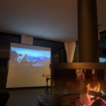 And the highlight for me, my absolute favorite, was the Cloud Bistro cafe and bar on the 5th floor. It was incredibly professional, the drinks were superb, and the two ladies working there were just wonderful. I had such a delightful evening there. Around 7 PM, they set off fireworks, and at 9 PM, they showed a movie. Everyone gathered around the fireplace in a room with floor-to-ceiling windows – it was just incredibly cozy and enjoyable.