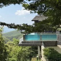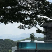 Perched atop a mountain at an altitude of 800 meters, Moganshan Naked Castle Hotel offers breathtaking panoramic views. Its spacious and bright cliffside rooms feature 360-degree floor-to-ceiling windows that perfectly frame the majestic surrounding mountains. The stunning infinity pool, dramatically cantilevered over the cliff, is heated for year-round enjoyment. The restaurant serves a lavish Western breakfast and exquisite dinners, all prepared with fresh, delicious ingredients. The hotel provides attentive service, and a complimentary shuttle bus ensures convenient access. Guests also receive free admission to Naked Valley, a sister property, offering a rich array of experiences. This makes it an ideal destination for both couples and families.