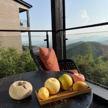 Waking up in the morning, gently drawing back the curtains, and watching the mist drift through the mountains, changing with the light – it was truly a sight so beautiful I couldn't tear my eyes away 🤩. Even doing nothing but lying in the room and soaking in the view brought immense joy.