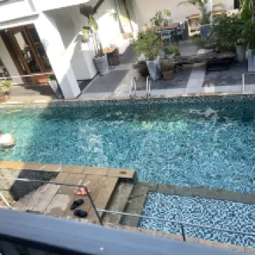 This was quite a pleasant surprise! We booked a two-story loft, and both levels were very spacious, plus there were bathrooms on each floor, which is perfect for a family trip. There's a small pool, and the water was quite clean. The front desk and breakfast area are on the first floor and are decorated very tastefully. The location is super convenient, close to Yushu Square, making it easy to explore and dine nearby, and it's also close to other attractions.