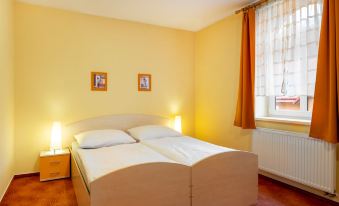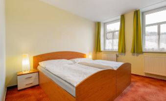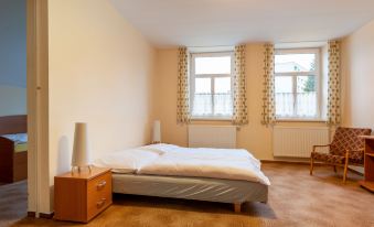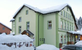 Apartment block, 3 storeys, built in 1890, renovated. In the centre 80 m from the centre of Desná, 2 km from the centre of Tanvald, 14 km from the centre of Jablonec nad Nisou, 2 km from the skiing area. In the house: central heating system. Parking (for 6 cars) on the premises. Shop 80 m, supermarket 200 m, bus stop "Desná, centrum" 400 m, railway station "Desná" 500 m, indoor swimming pool 13 km. Nearby attractions: Rozhledna Špičák, Rozhledna Světlý vrch 3.5 km, Maják Járy Cimmermana 4 km, Rozhledna Štěpánka 5 km, Aquapark Babylon, Zoo Liberec 25 km. Well-known ski regions can easily be reached: U Čápa 4 km, Tanvaldský Špičák 5 km, Rejdice 7 m. Hiking paths: Vodní nádrž Souš 5 km. "Base Camp 3", 8-room apartment 200 m2, on the top floor. Spacious: living/dining room with dining table, satellite TV, radio and DVD. Living/sleeping room with 1 double sofabed. 1 room with 2 beds. Walk-through room, 1 room with 1 double beds. 1 room with 2 beds. 1 room with 1 double sofabeds and 1 double beds. Walk-through room, 1 room with 1 double beds. 1 open room with 2 beds. Kitchen (oven, dishwasher, 4 ceramic glass hob hotplates, toaster, kettle, microwave, freezer, electric coffee machine). 4 showers/WC. Gas heating. Facilities: Internet (WiFi, free). Please note: suitable for families. Non-smokers only. 1 small pet/ dog allowed.