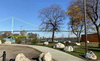 What landmarks are close to Cozy 1 bedroom Apartment Downtown Detroit?