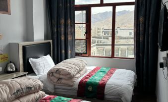 特別驚喜!我以為景區裏面的客棧會什麼都沒有呢!老闆給我們升級了標間,有獨衞太感動惹怕高反臨時不住珠峯大本營,坐觀光車到了換乘中心,客棧離換乘中心衹有五百多米,很近,主要是便宜hhh算是家庭旅社,大廳有一個大爐子,燒了熱水,為了看日落金山凍死了,一杯熱水救我狗命老闆小姐姐特別好~擔心我高反還請我喝了可樂!床很軟,窗户可以看到外面的星星!!!老闆説星空在夜裡2-3點最好看我一次看到綠色星雲的星空!!!不衹有珠峯帳篷才能看到,山下也可以看星星!